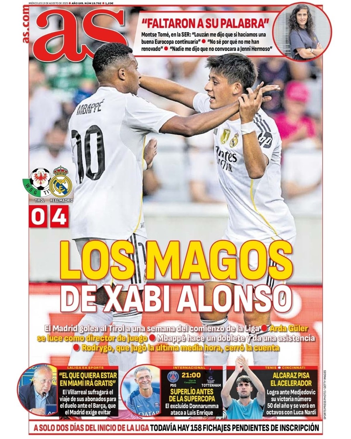 "ALONSO'NUN BÜYÜCÜLERİ" Arda'nın performansı İspanya basınında gündem oldu. Maça damga vuran milli yıldız övgülerle manşetlere taşındı. İspanyol gazetesi AS, Arda ve Mbappe için "Alonso'nun büyücüleri." başlığını atarak ikiliyi manşetlere taşıdı. Marca ise "Arda ile Mbappe iş birliği sevindirici. Bu birliktelik keyifli olacak." ifadelerini kullandı.