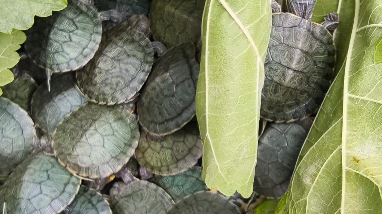 Bolu'da şehirler arası yolcu otobüsünde 500 kırmızı benekli su kaplumbağası ele geçirildi.