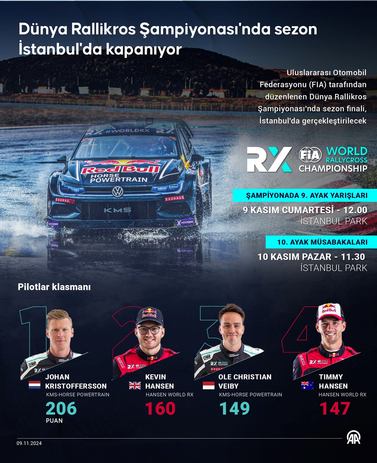 Uluslararası Otomobil Federasyonu (FIA) tarafından düzenlenen Dünya Rallikros Şampiyonası'nda sezon finali, hafta sonu İstanbul'da gerçekleştirilecek. Pilotlar klasmanında zirvede bulunan İsveçli Johan Kristoffersson, kariyerinin 7. şampiyonluğu için yarışacak