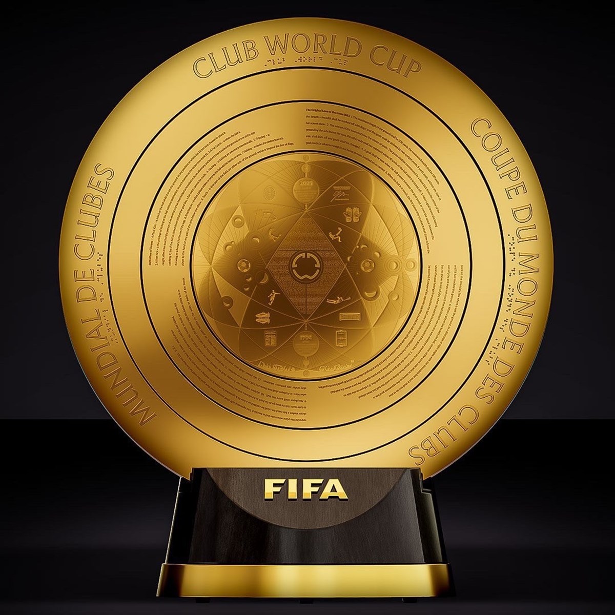 24 AYAR ALTIN KAPLAMA Pimle birbirine bağlı ve aynı yörüngede dönebilen 4 diskten oluşan kupa, tasarımıyla dikkati çekiyor. 24 ayar altın kaplama kupanın iki tarafında da futbol tarihine ilişkin lazerle işlenmiş yazı ve semboller bulunuyor. FIFA'nın yeni organizasyonunda 6 konfederasyondan, 32 kulüp yer alacak. 4'erli 8 gruba ayrılacak takımlar, birbiriyle tek maç üzerinden karşılaşacak. Grubunu ilk 2 sırada tamamlayanlar, sonraki turlarda tek maç eleme usulüne göre karşılaşacak.
