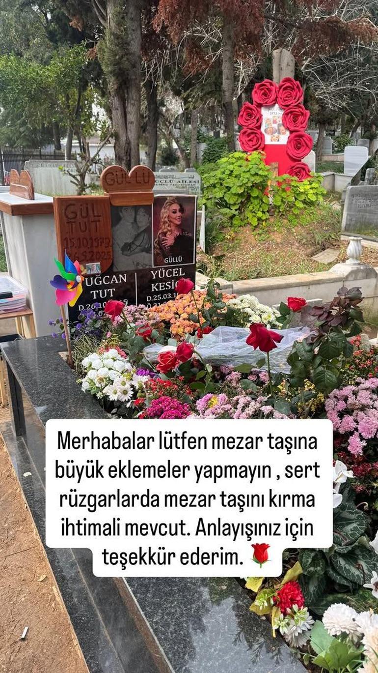 Gülter, üzerinde renkli çiçeklerin yer aldığı mezarın fotoğrafını paylaşarak şu notu düştü: