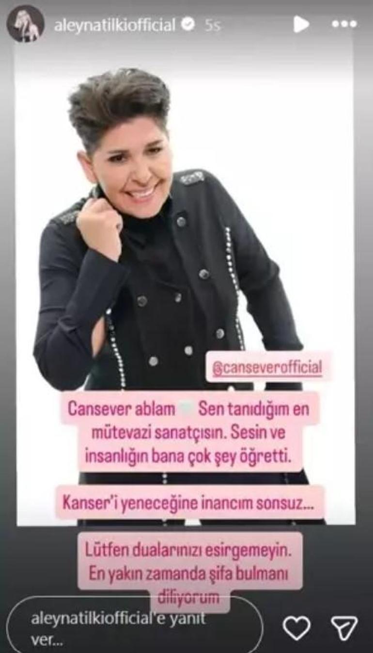 Cansever’e genç meslektaşı Aleyna Tilki’den destek geldi. Sosyal medya hesabında yaptığı paylaşımda Cansever’i etiketleyen ünlü şarkıcı şu ifadeleri kullandı: