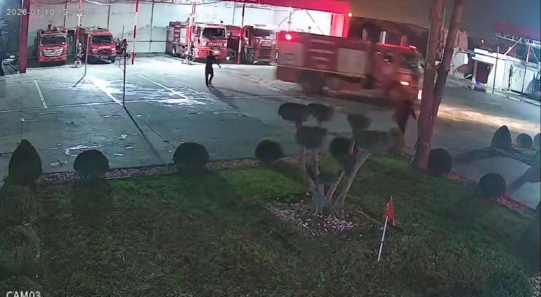 Kamera kaydında, itfaiyecilerin ihbara müdahale etmek üzere hızla hareket ettiği görüldü.