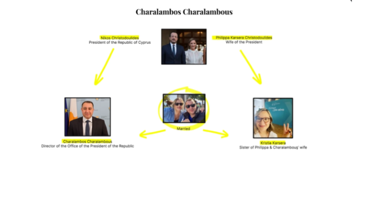 Hristodulidis’in nakit paraya ihtiyacı olduğunda, eşi Filippa Karsera'nın kız kardeşi Kristia Karsera ile evli olan Başkanlık Ofisi Müdürü Haralambos Haralambus'u aradığı öne sürülen videoda, Hristodulidis’in Karsera’nın söz konusu paraları "bağış" adı altında aldığı iddia edildi.