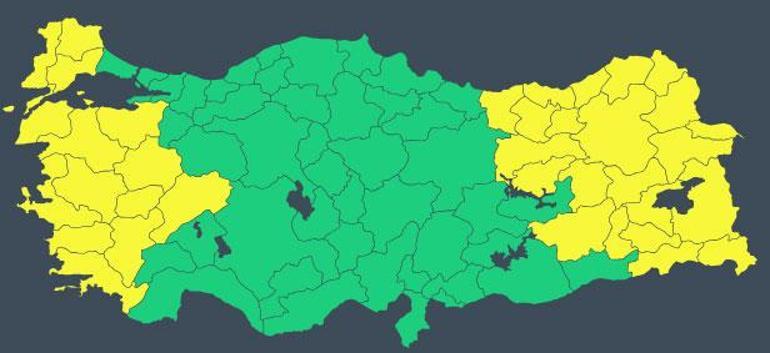 Bakanlıktan apılan açıklamaya göre, Afyonkarahisar, Ağrı, Ardahan, Artvin, Aydın, Balıkesir, Batman, Bayburt, Bingöl, Bitlis, Bursa, Çanakkale, Denizli, Diyarbakır, Edirne, Erzincan, Erzurum, Giresun, Gümüşhane, Hakkari, Iğdır, İzmir, Kars, Kırklareli, Kütahya, Manisa, Muğla, Muş, Rize, Siirt, Şırnak, Tekirdağ, Trabzon, Tunceli, Uşak ve Van için "sarı" kodlu meteorolojik uyarı yapıldı.