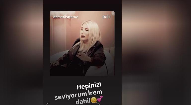 Kendisine yapılan bir video editi alıntılayan Demet Akalın'dan bu sözleri söyleyen Derici'ye barışma hamlesi geldi. Akalın yaptığı paylaşımda, 'Hepinizi seviyorum İrem dahil' yazdı.