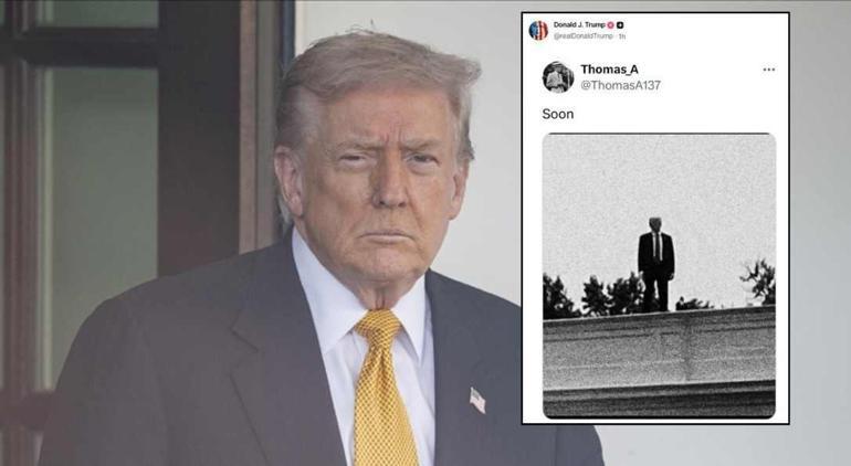 Trump’ın alıntıladığı bir başka gönderi ise dikkat çekti. Gönderide yer alan siyah-beyaz görüntüde, Beyaz Saray’ın üstünde tek başına duran Trump silueti görüldü.