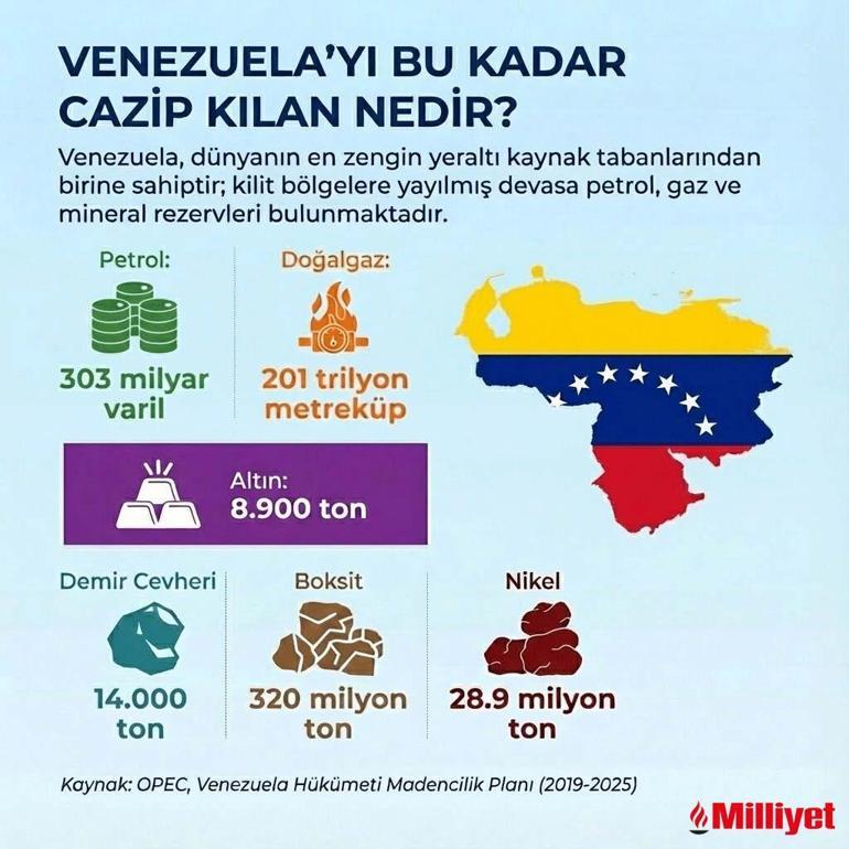 MİLLİYET.COM.TR / Dünyada petrol arzının arttığı bir dönemde Venezuela, enerji piyasaları için ikincil bir başlık gibi görülse de sahip olduğu devasa yeraltı kaynakları ve jeopolitik konumu nedeniyle küresel güç mücadelesinin merkezinde yer alıyor. ABD’nin askeri müdahalesiyle birlikte ülke, petrolün ve stratejik madenlerin küresel siyasette hala belirleyici olup olmadığı sorusunu yeniden gündeme taşıdı.